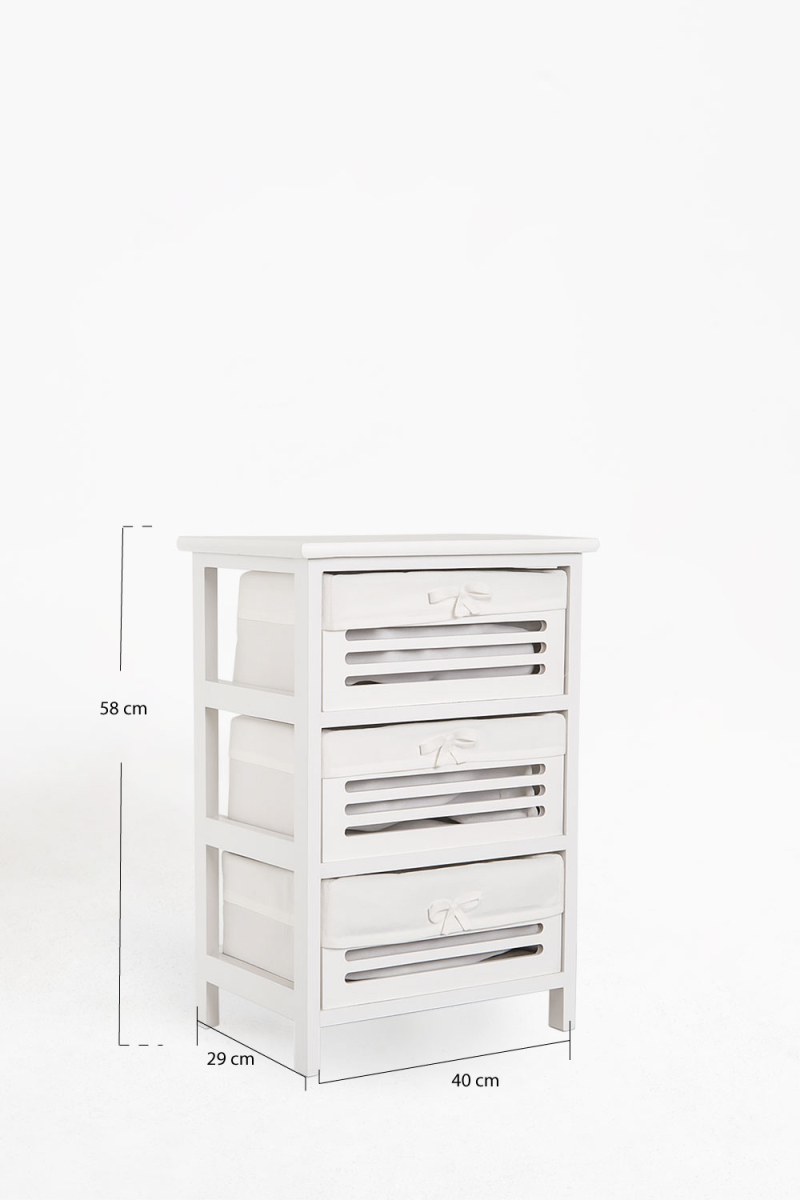 Cómoda Katmy 3 Gavetas Altura : 68 cm. Largura : 38 cm. Profundidade : 28 cm. Material : Madeira Garantia : 3 anos 100 dias para trocas ou devoluções Reserva. Receba a partir de