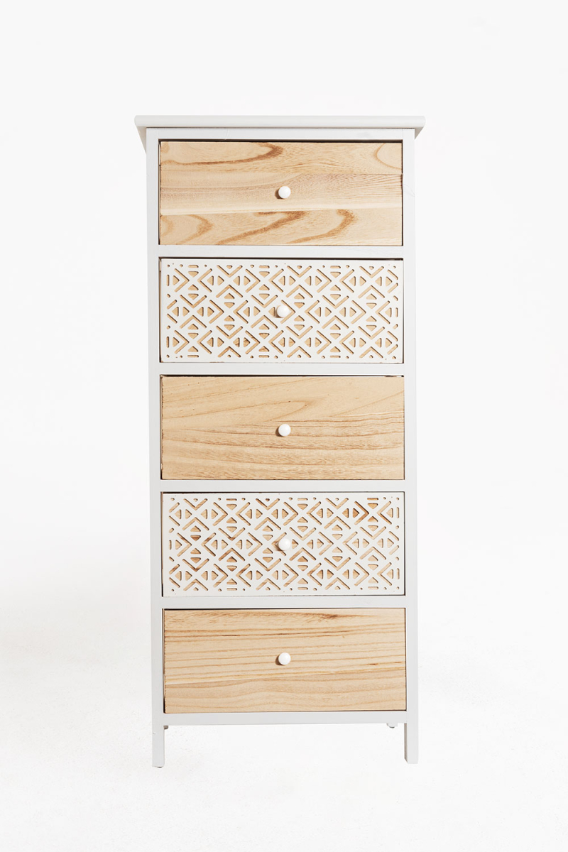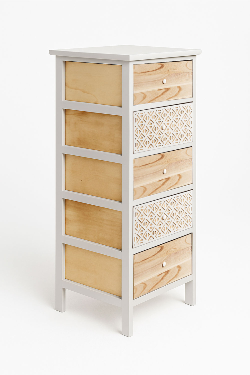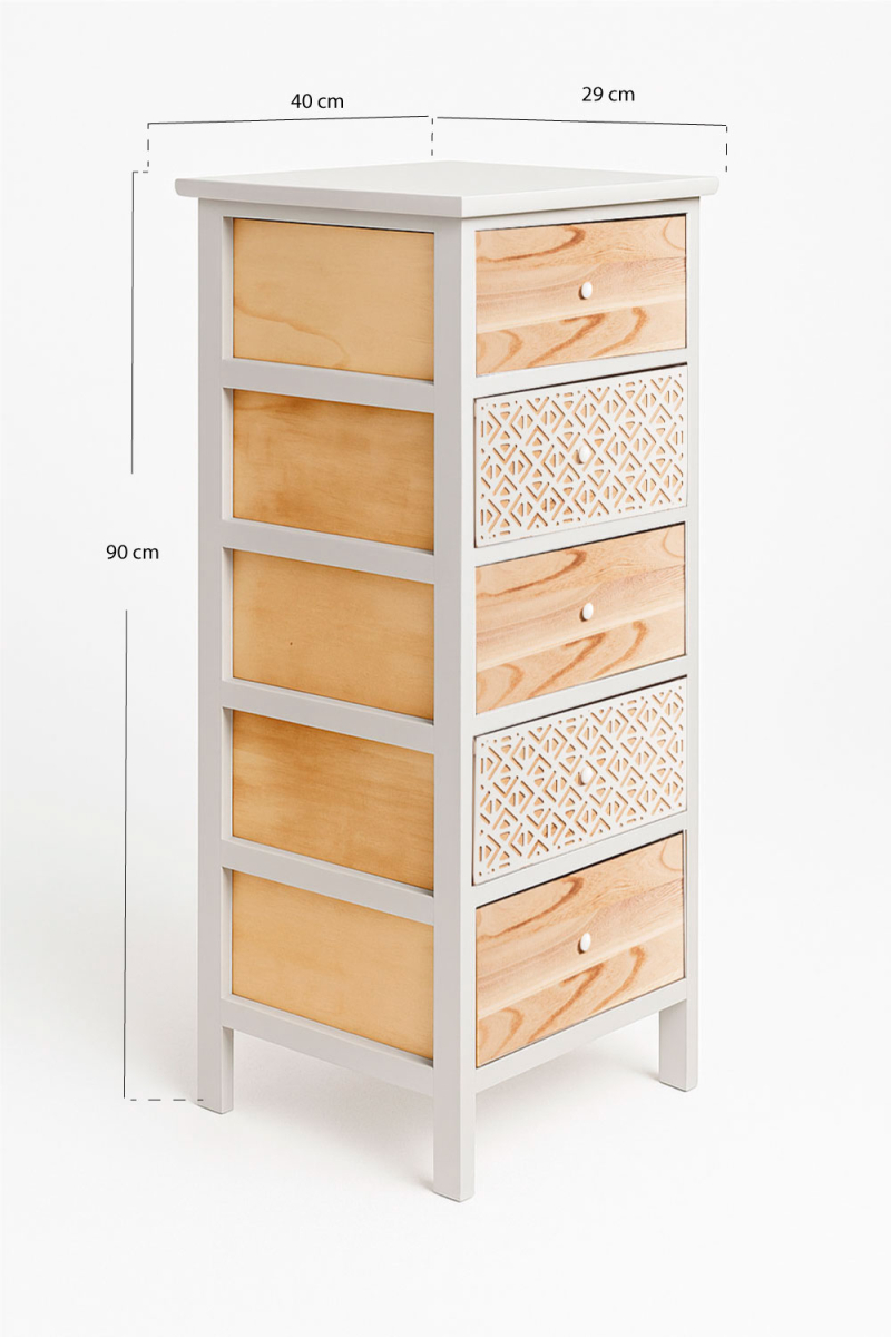Cómoda Estreita Taroki 4 Gavetas Altura : 80 cm. Largura : 26 cm. Profundidade : 32 cm. Peso : 3,5 kg. Material : Madeira Garantia : 3 anos 100 dias para trocas ou... Em stock. Envio em 3 a 5 dias