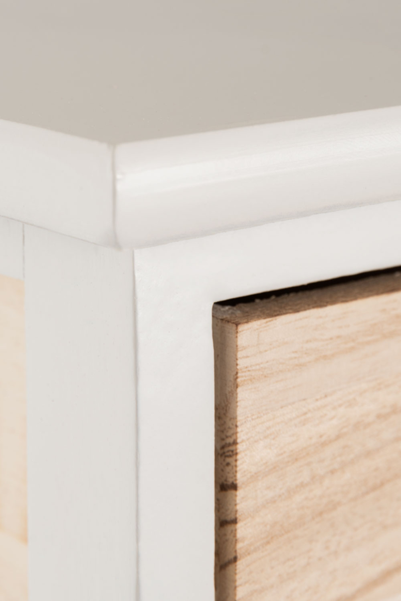Cómoda Larga Taroki 4 Gavetas Altura : 73 cm. Largura : 40 cm. Profundidade : 29 cm. Peso : 3,5 kg. Material : Madeira Garantia : 3 anos 100 dias para trocas ou... Em stock. Envio em 3 a 5 dias