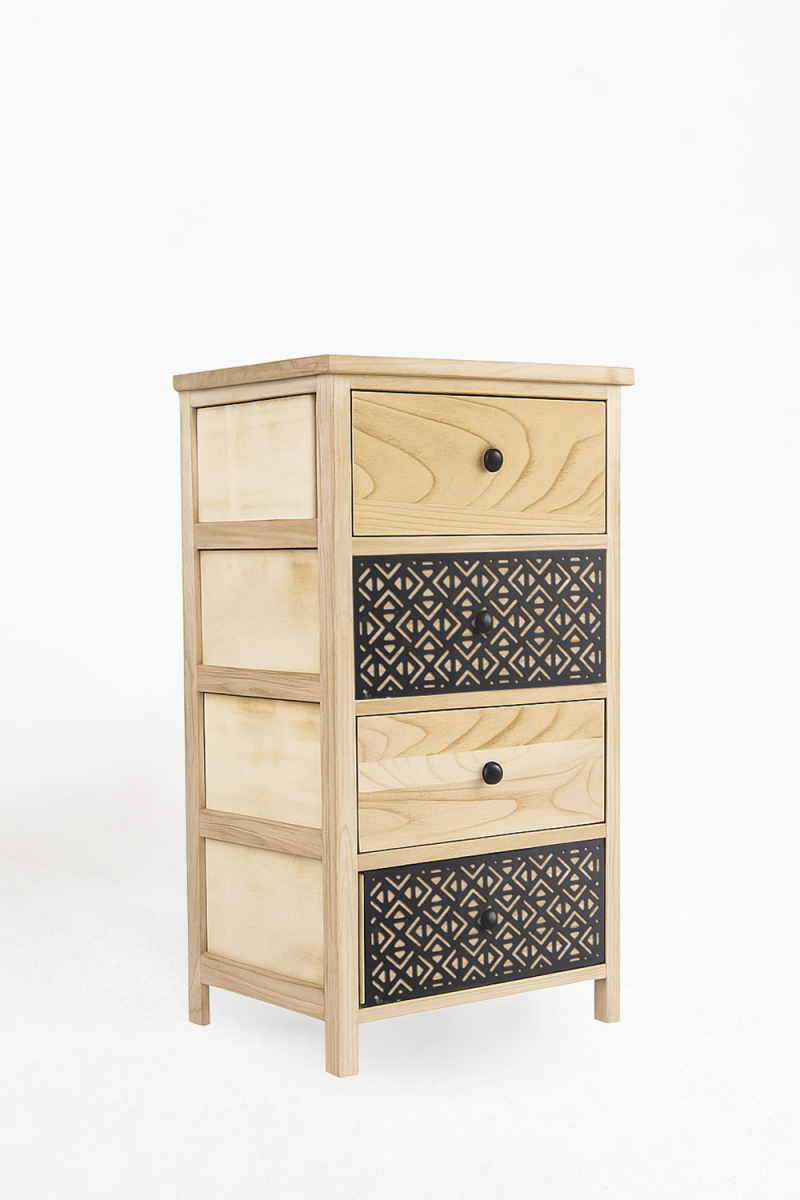 Cómoda Mabet Larga 4 Gavetas Material : Madeira Altura : 74 cm. Largura : 40 cm. Profundidade : 29 cm. Em stock. Envio em 3 a 5 dias