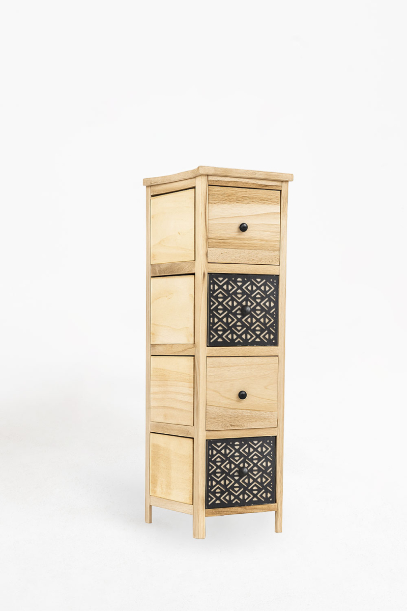 Cómoda Estreita Walfle 4 Gavetas Material : Madeira Altura : 80 cm. Largura : 26 cm. Profundidade : 32 cm. Peso : 5,1 kg. As dimensões das gavetas internas são : 25 x... Em stock. Envio em 3 a 5 dias
